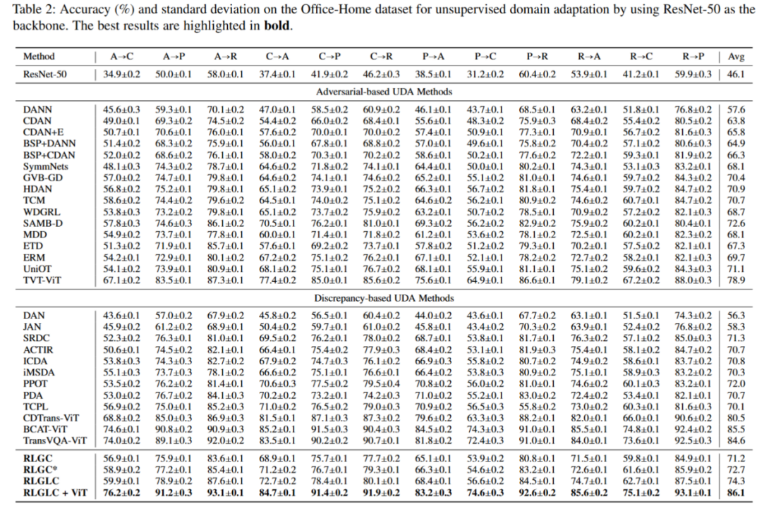 研究团队在多个标准领域自适应基准上对RLGLC进行了系统评估。所有实验均重复五次并汇报平均准确率,结果显示RLGLC在各项任务中整体优于现有对抗式UDA方法。在不同骨干网络与实验设置下,RLGLC均表现出优异的泛化能力和鲁棒性,尤其是在大规模、高难度的迁移任务中优势更为明显。此外,基于Friedman检验的统计分析进一步证实,RLGLC所带来的性能提升具有显著的统计学意义。