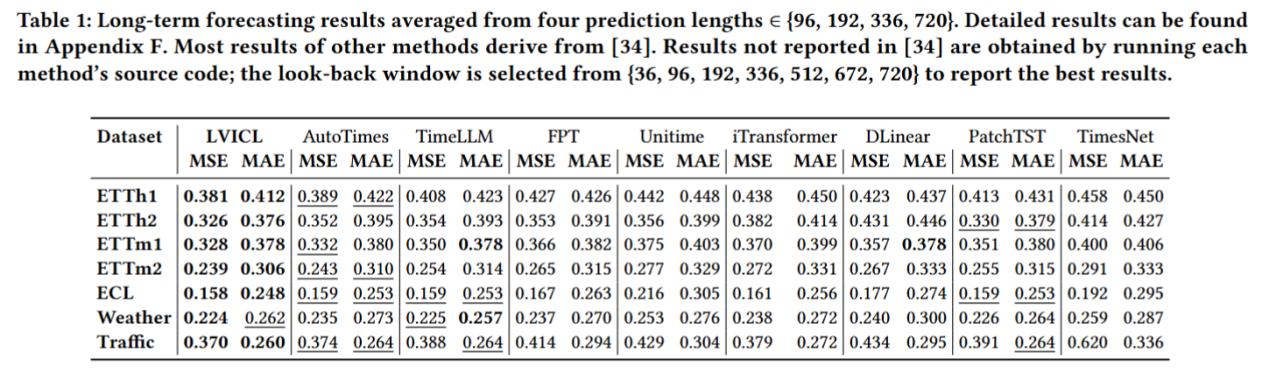 研究团队在多个时间序列预测基准数据集上对LVICL进行了系统评估。实验表明,LVICL在保持 LLM 完全冻结、训练开销显著降低的前提下,能够稳定复现并进一步放大上下文学习带来的收益。与轻量微调方法相比,LVICL在多种数据集与实验设置下均表现出更强的预测能力,并在效率与性能的平衡上展现出更好的实用性。