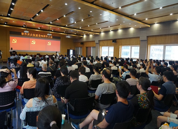 7月1日上午,在庄严的国歌声中,软件所庆祝建党98周年大会在5号楼四层大报告厅隆重举行。会议由党委副书记、纪委书记李衡主持,软件所党委委员、纪委委员、支部书记及支部党员等共250余人参加了会议,会场气氛庄重热烈。