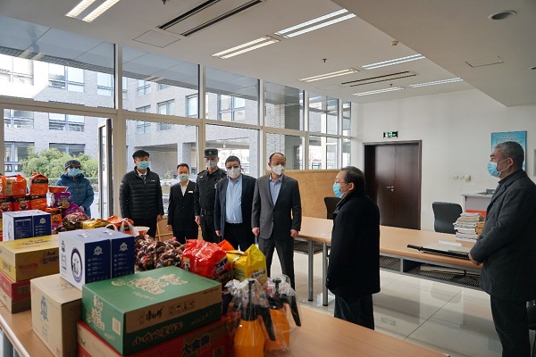 3月16日上午,软件党委书记、副所长操云甫,党委副书记、纪委书记李衡等一行看望慰问了软件园区食堂、保洁部、保安部、工程部、客服部等后勤工作人员,并为他们送去了纯牛奶、方便面、卤蛋、肥皂等慰问品, 表达了所党委对疫情防控一线工作人员的关心与牵挂。