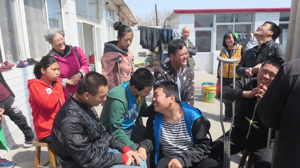 当孩子们行动不便地聚拢在院子里,热情大方地为我们唱起励志温暖的歌曲,甚至模仿小沈阳说段子时,我们笑了,赞叹他们表演得真好!可我分明却看见孙四敏老师在偷偷抹眼泪。