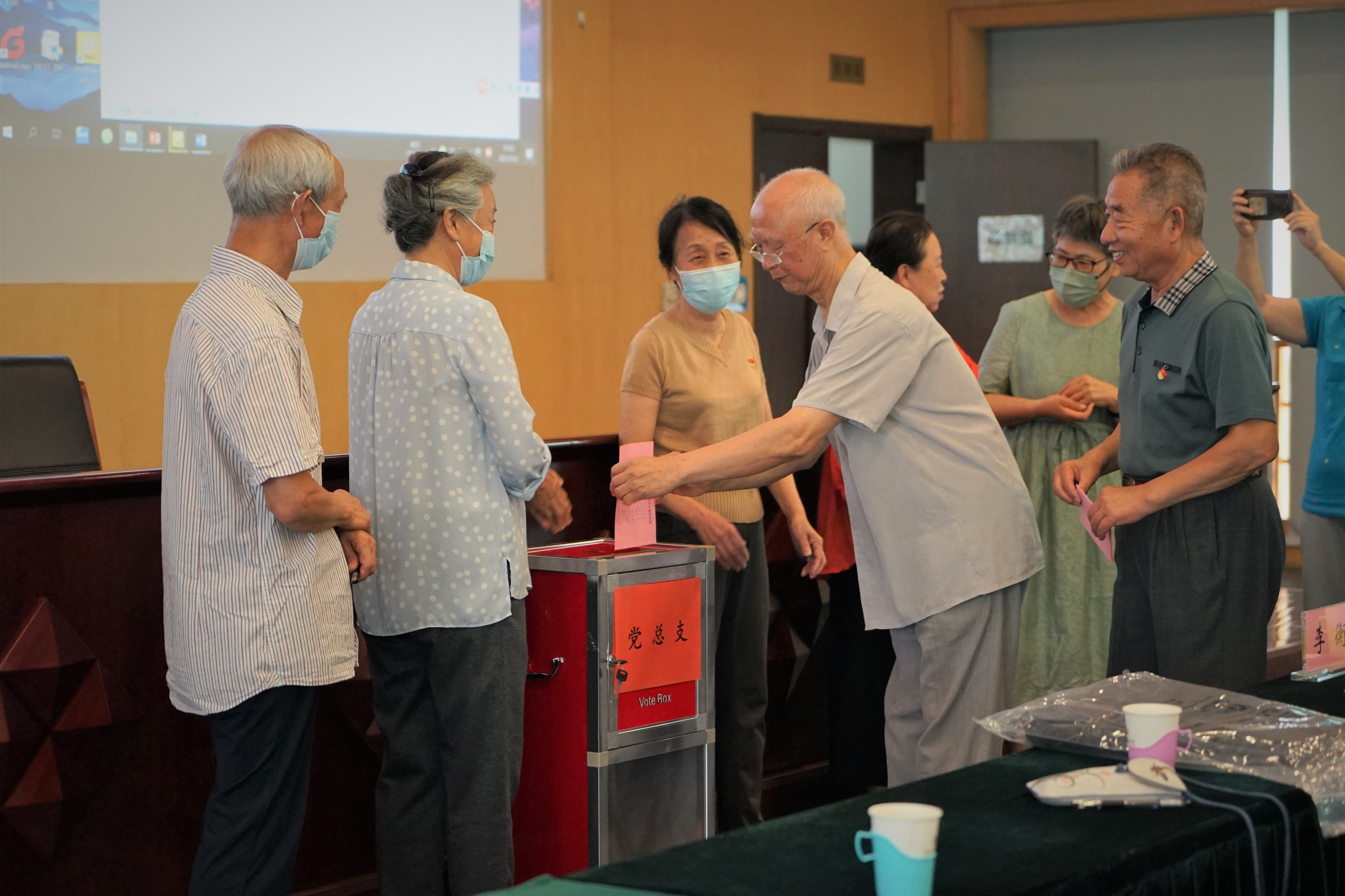 大会第二项议程是进行党支部和党总支的换届选举。首先由党总支纪检委员孙四敏汇报《离退休党总支(支部)支委会选举办法》(草案),经大会表决一致通过。接下来由党总支宣传委员关光宁介绍离退休党支部支委候选人情况。随后我所离退休党员们行使了自己的民主权利,投出了庄严的选票,选举产生了第一党支部、第二党支部以及党总支的新一届委员会委员。党委副书记李衡、党群办主任谢京红与新老离退休党总支委员合影留念。新当选的党总支(支部)委员召开支委会,选举产生了党总支(支部)书记、副书记,并进行支委分工。