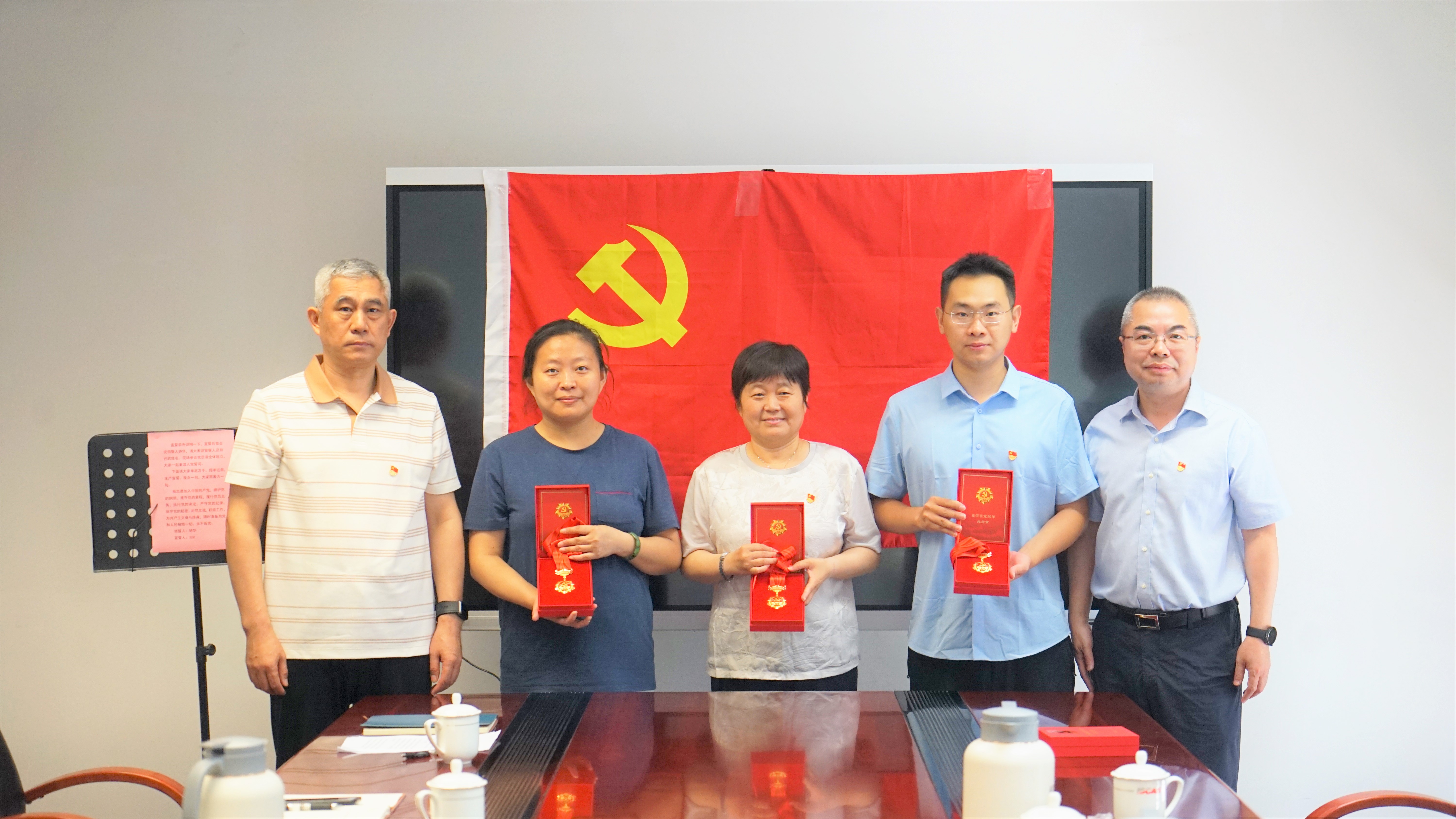 今年软件所有戴国忠、李秉鑫、孙晓辉、刘中朝、王学良、张素琴六位老党员获此殊荣。由于身体等原因,戴国忠和王学良两位党员到场参加,其他获奖党员委托子女或同事代为参会。钟华、李衡为获得荣誉的老党员颁发纪念章并合影留念。