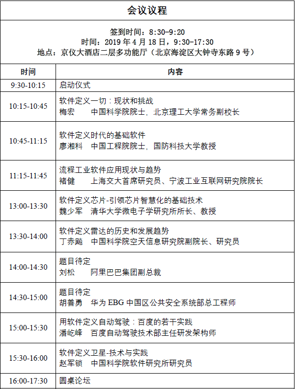 (邮件主题:软件定义推进委员会启动会暨学术论坛咨询)
