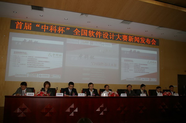 2009年4月29日下午,首届“中科杯”全国软件设计大赛新闻发布会在中科院软件所大报告厅召开。主办方中国软件行业协会理事长陈冲、中国科学院软件研究所副所长黄涛共同宣布首届“中科杯”全国软件设计大赛全面启动。中国科学院院士董韫美、中国科学院院士周巢尘、中国科学院院士林惠民、中科软科技股份有限公司总裁左春、中科方德软件有限公司副总裁刘兵、中科院软件所科技处处长刘克龙、研究生部主任李彩丽、信息中心主任刘志勇、大赛专家评审委员会代表王裕国研究员、张云泉研究员、王文成研究员、大赛组委会全体成员、协办方代表、研究生代表等出席了新闻发布会。中国教育电视台、光明日报、科技日报、科学时报、计算机世界、中国计算机报、网易、搜狐、程序员杂志等十余家媒体出席了本次发布会。