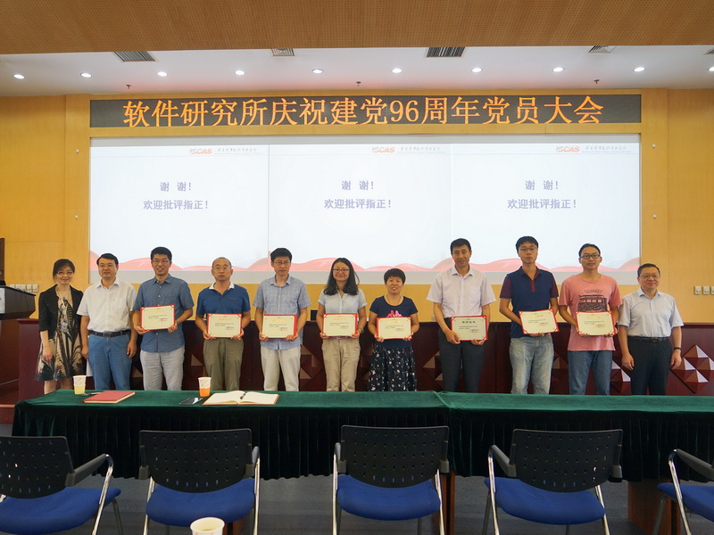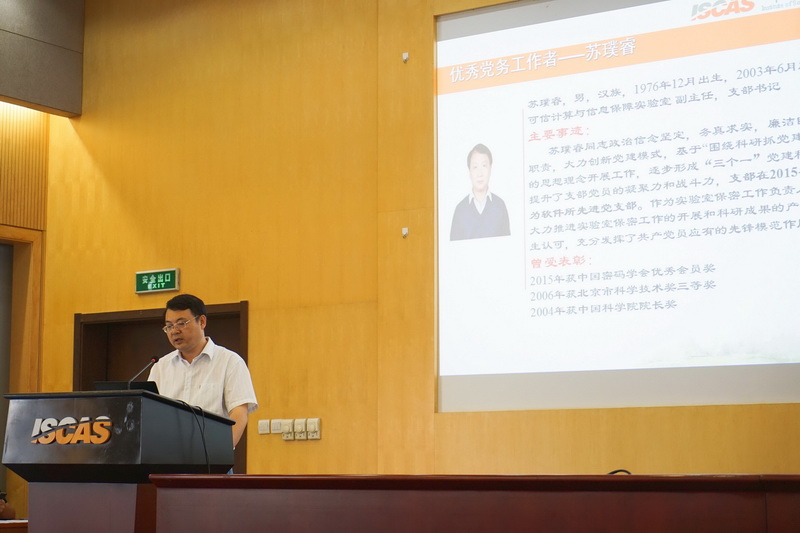 会上,党委副书记、副所长肖作敏宣读了软件所党委《关于表彰先进党支部的决定》。授予管理支撑党支部、可信计算与信息保障实验室党支部、软件工程技术研究开发中心党支部、计算机科学国家重点实验室与并行软件与计算科学实验室联合党支部、中科软股份公司党总支 “2016年度软件所先进党支部”荣誉称号,操云甫书记和石兵书记为获奖支部颁发了荣誉证书。 随后,肖作敏副书记宣读了软件所党委《关于表彰优秀共产党员和优秀党务工作者的决定》,并对表彰的8名优秀党员和优秀党务工作者的事迹进行了介绍,操云甫书记和石兵书记为优秀党员和优秀党务工作者颁发了荣誉证书。