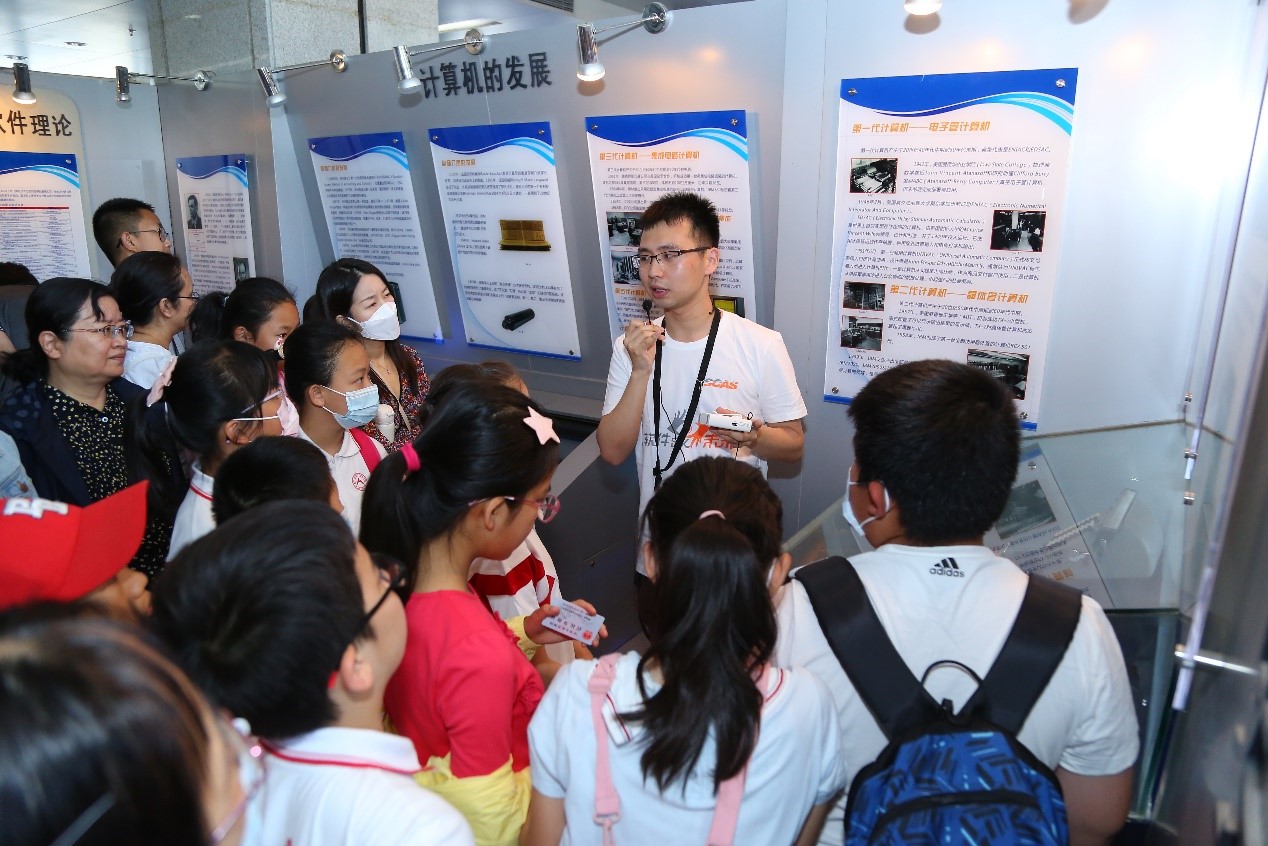 软件所的软件技术博物馆展厅是国内第一家以“计算机软件”为主题的科普展厅。展厅通过文字图片展板、实物展柜、模型、触摸屏等方式,将计算机软件从起步到现在的发展状况生动、直观地展示给公众。活动当天,展厅的志愿讲解员们则轮番上阵,为公众提供了十多场精彩讲解,以期在公众脑海中勾勒出世界软件发展史和中国软件发展史的概貌。