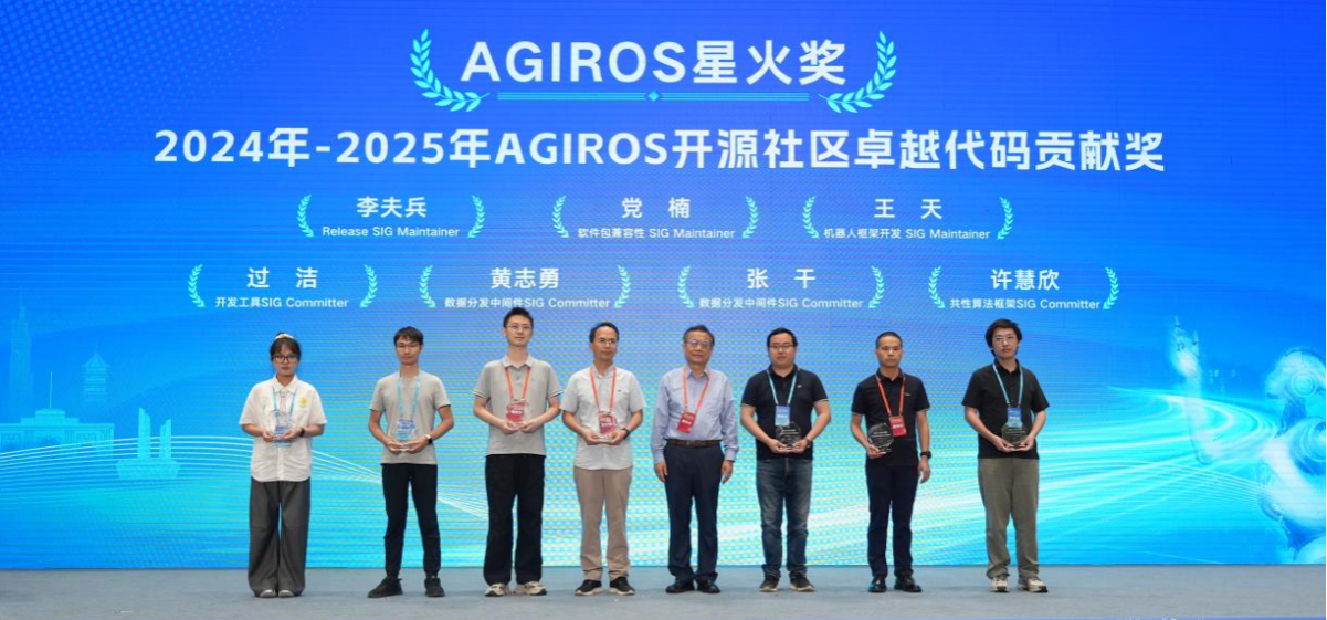 大会当天还颁发了AGIROS“星火奖”和AGIROS“领航奖”,以表彰2024-2025年度AGIROS开源社区卓越代码贡献个人及企业和组织。软件所智能软件中心助理工程师党楠、集成创新中心李夫兵获“星火奖”,软件所荣获“领航奖”。