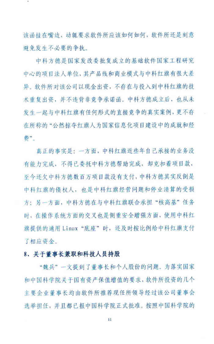 软件研究所/科软创新公司关于中科红旗情况的声明.PDF