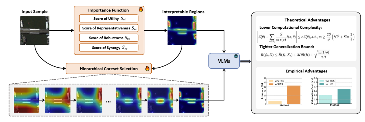 近日,中国科学院软件研究所天基综合信息系统全国重点实验室研究团队围绕视觉语言模型(VLM)在复杂广域场景中的迁移与泛化问题,提出了一种基于核心集理论的图像语义理解方法(Hierarchical Coresets Selection,HCS),显著提升了VLM对未见场景的理解能力。相关成果论文 Advancing Complex Wide-Area Scene Understanding with Hierarchical Coresets Selection 在计算机视觉和多媒体处理领域国际会议ACM International Conference on Multimedia(ACMMM 2025) 上发表。第一作者为博士生王婧瑶,通讯作者为高级工程师司凌宇。